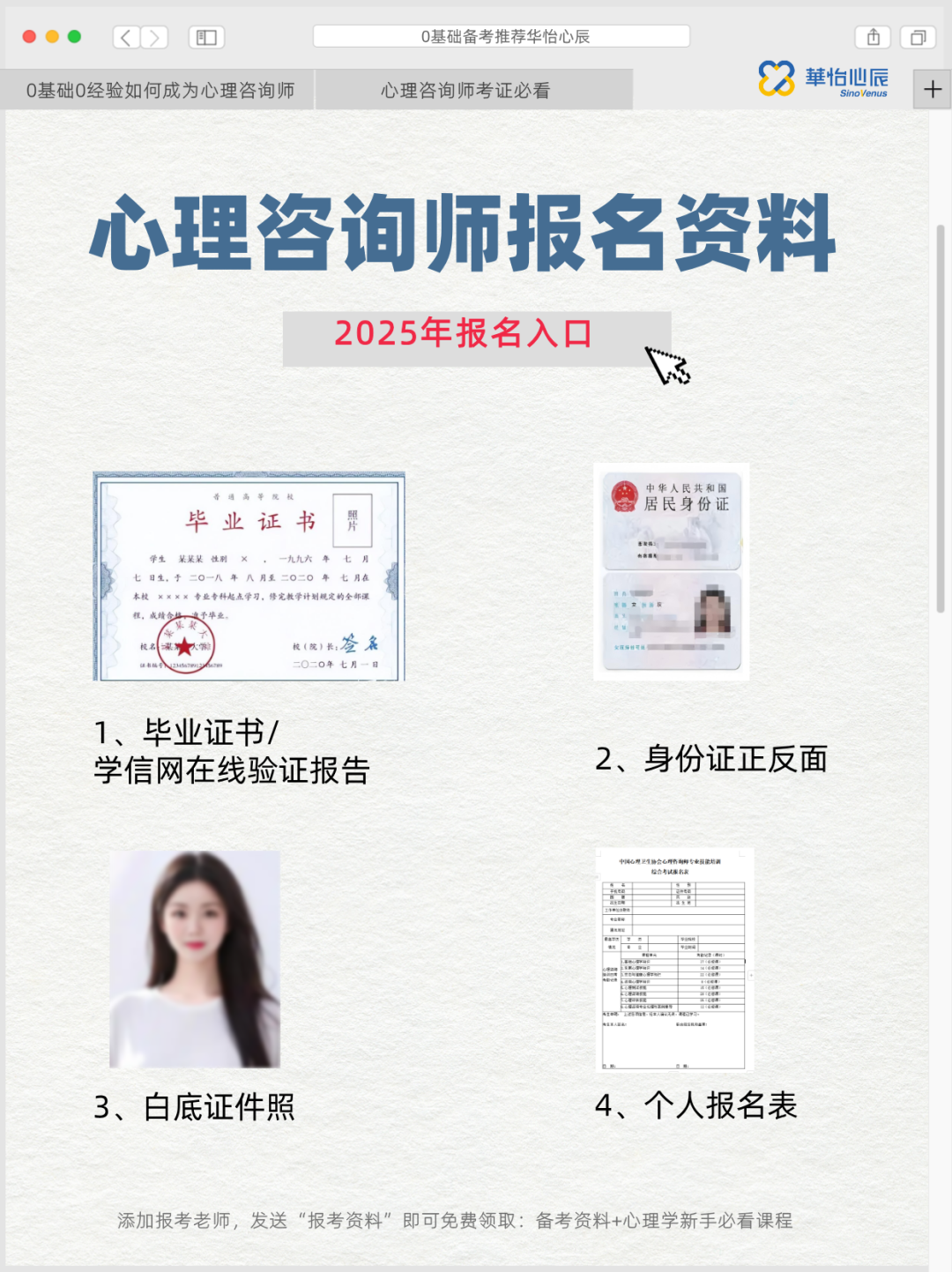 符合心理咨询师报名条件的学员可以将报考资料提交给机构完成报名审核工作: