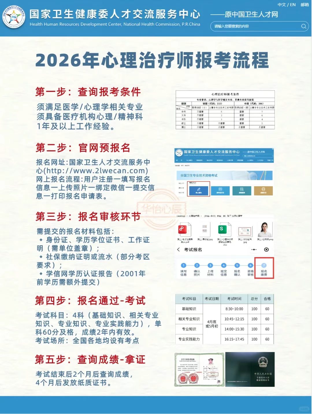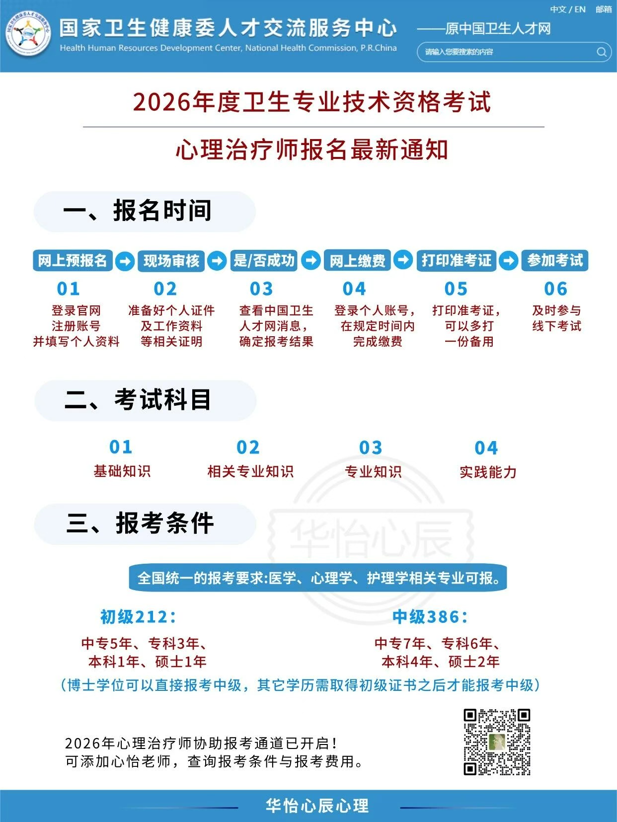 国家卫健委心理治疗师报考指南:2026年报名流程及考试内容详解!