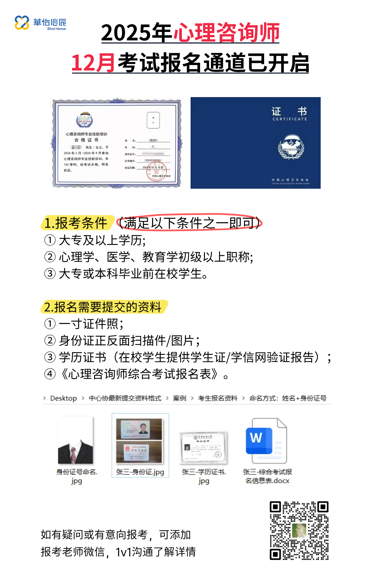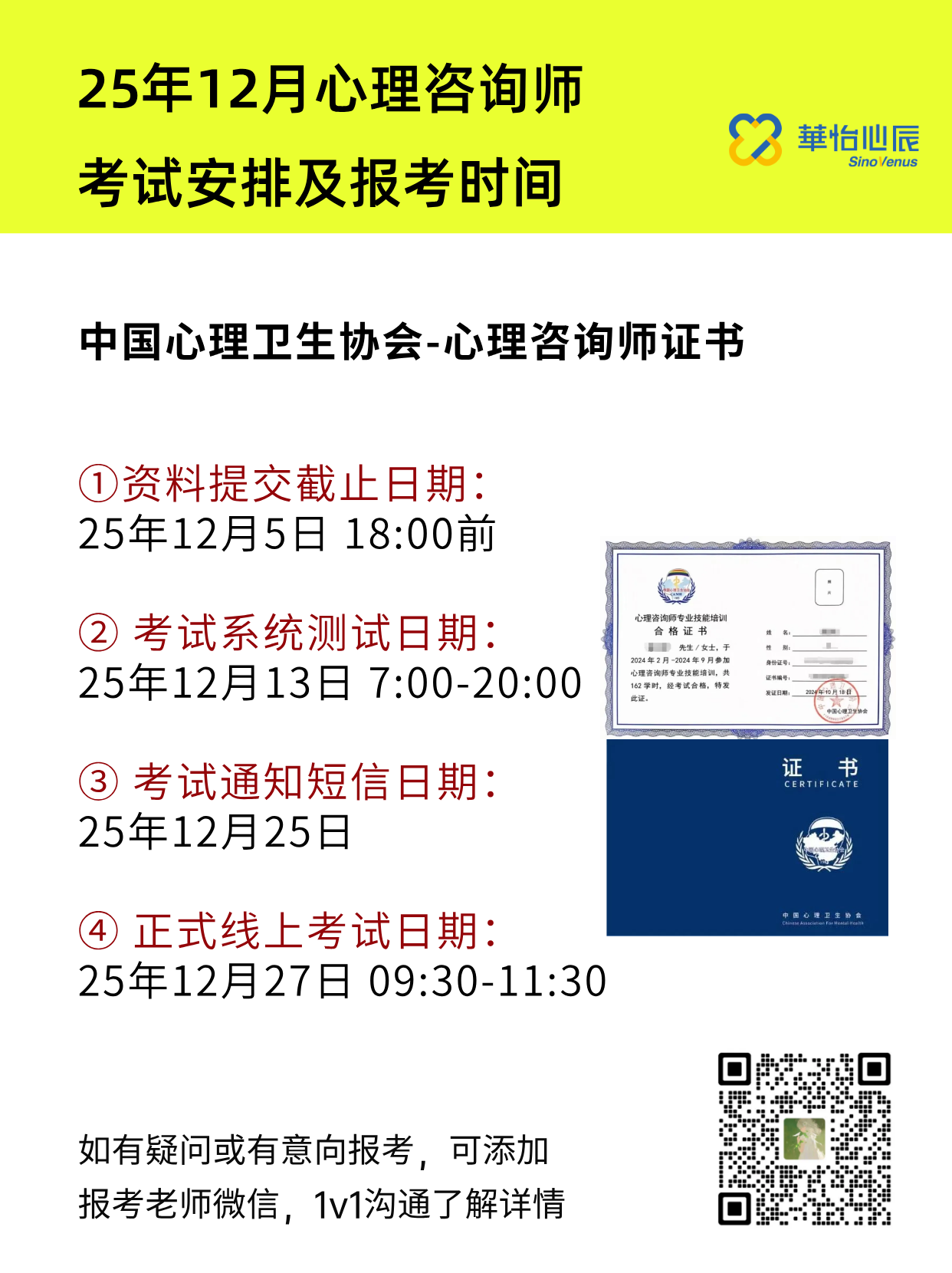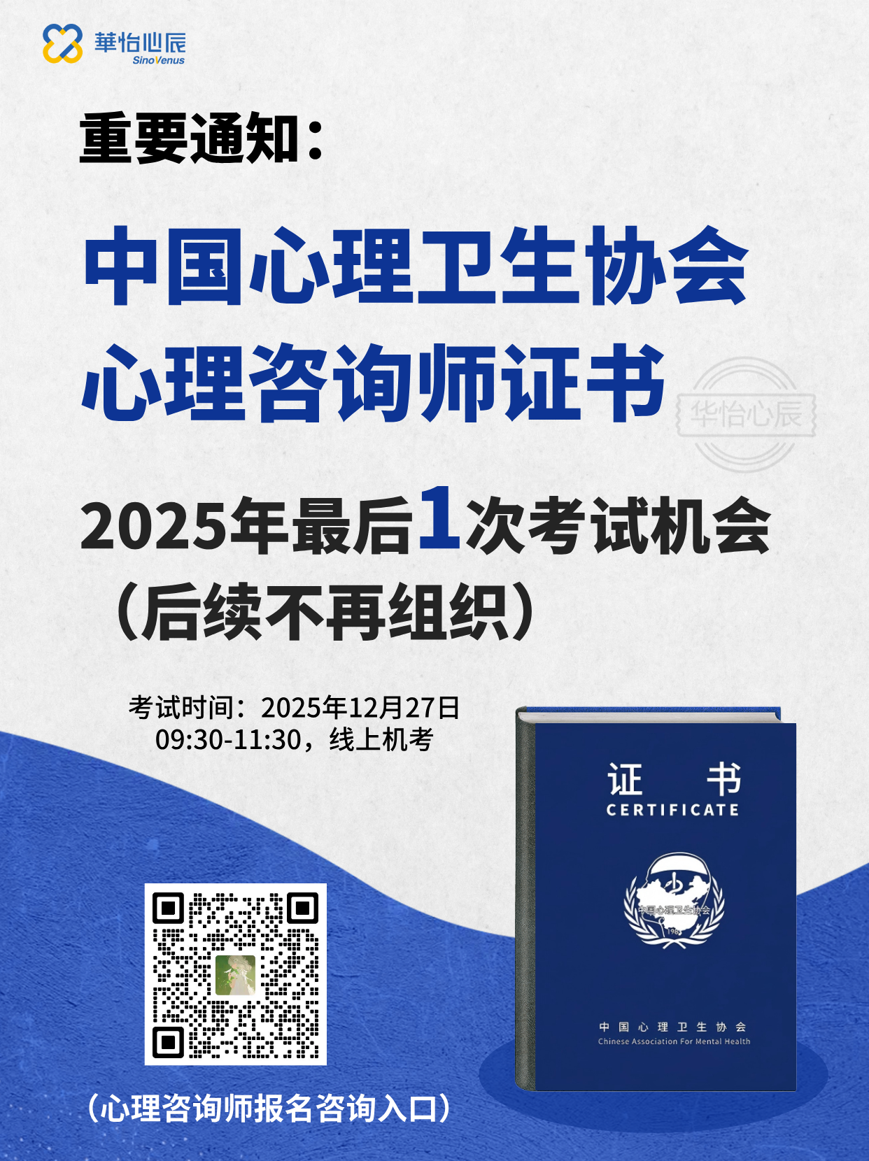 根据最新安排,2025年12月将是中国心理卫生协会心理咨询师证书考核模式的最后一次考试机会。
