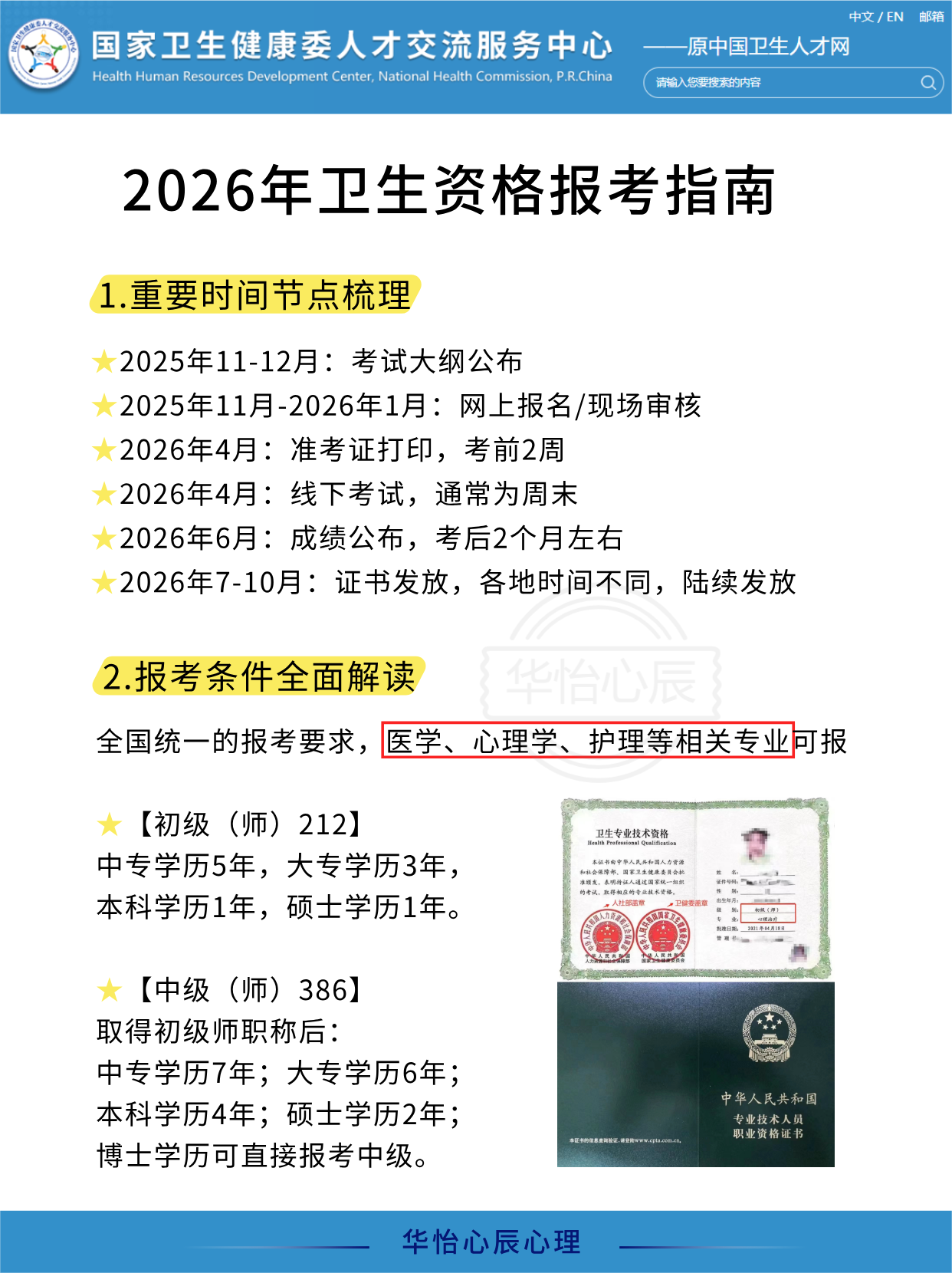 📢心理治疗师考生注意!2026年卫生资格考试报考指南来了:时间节点 + 审核红线 + 备考干货,看完赶紧收藏~🤓