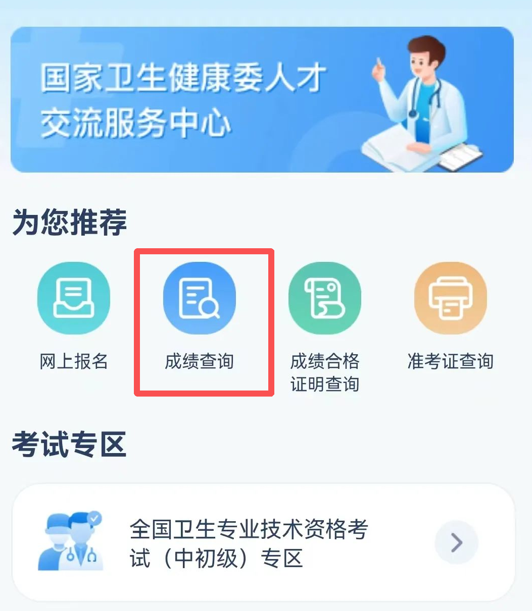 成绩查询方法:考生可在微信、百度、支付宝搜索小程序 “国家卫生健康委人才服务交流中心”,或者是公众号 / 官网查询考试成绩。
