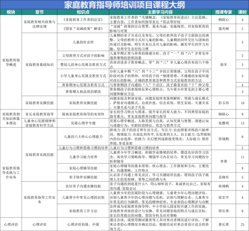 家庭教育指导师课程内容